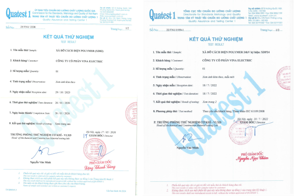 Xà đỡ cách điện Polymer của Vina Electric được kiểm soát chất lượng nghiêm ngặt thông qua hệ thống thử nghiệm đồng bộ trước khi đưa vào vận hành thực tế.